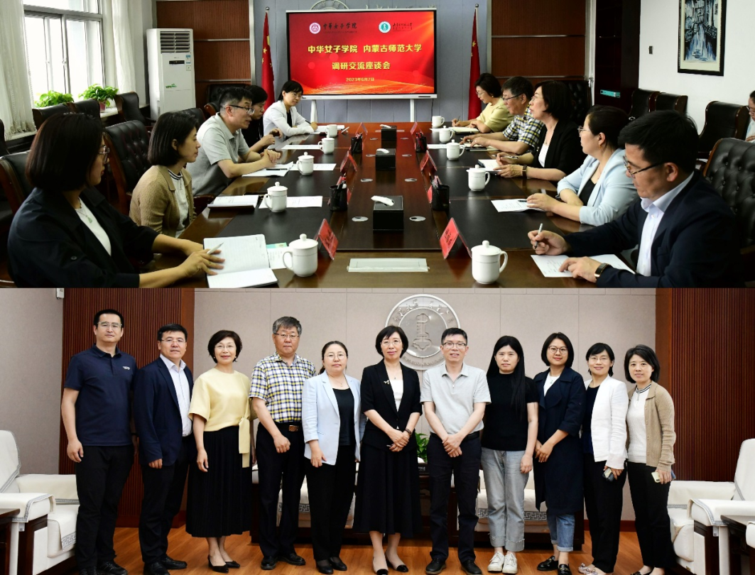 6月7日上午,调研组又来到内蒙古工业大学新城校区与内蒙古工业大学副校长吕晓琪,教务处处长刘利强,科研处处长刘景顺,马克思主义学院党委书记王文华,发展规划处副处长李勇围绕本科人才培养、科研工作、马克思主义妇女理论研究、微专业建设等问题开展座谈交流。会前内蒙古工业大学党委副书记、校长郭喜会见我校调研组,对我校来访表示热烈欢迎,并希望强化双方交流合作;座谈会后调研组参观了内蒙古工业大学化工学院分析测试中心和马克思主义学院智慧教学实践基地,并向吕副校长赠送了我校编写的《马克思主义妇女理论中国化与妇女事业发展研究论文集》(第一辑、第二辑)。内蒙古工业大学始建于1951年的绥远省高级工业学校,是教育部首批新工科研究与实践项目实施高校,其马克思主义学院建设工作成绩斐然,先后获批各类国家级(含部委)项目27项,省部级(含厅局)95项,项目经费600余万元等。