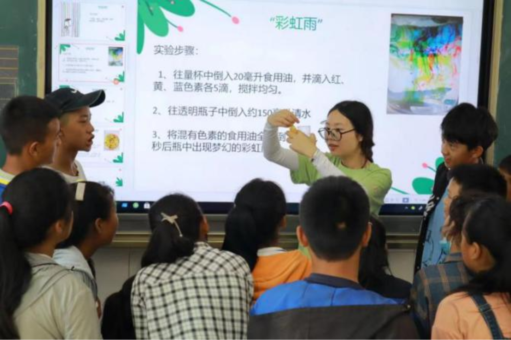 彝欣社区实践团成员们为孩子们带来了“静电小游戏”“会爬升的水”“纸巾彩虹桥”等科普小实验。通过参与实验,培养孩子们的逻辑思维能力、激发对科学未知世界的好奇心和探索欲,为他们种下“科学”的火种。团队还向孩子们介绍“卫星”,带领他们领略祖国的科技力量,激发他们的爱国热情。针对层出不穷的网络诈骗,成员们还为孩子们带来网络安全课,给孩子们介绍了电信诈骗的危害,并请孩子们一起推进“全民反诈”。