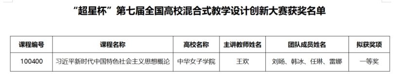 喜报!马克思主义学院教师团队获得第七届全国高校混合式教学设计创新大赛一等奖
