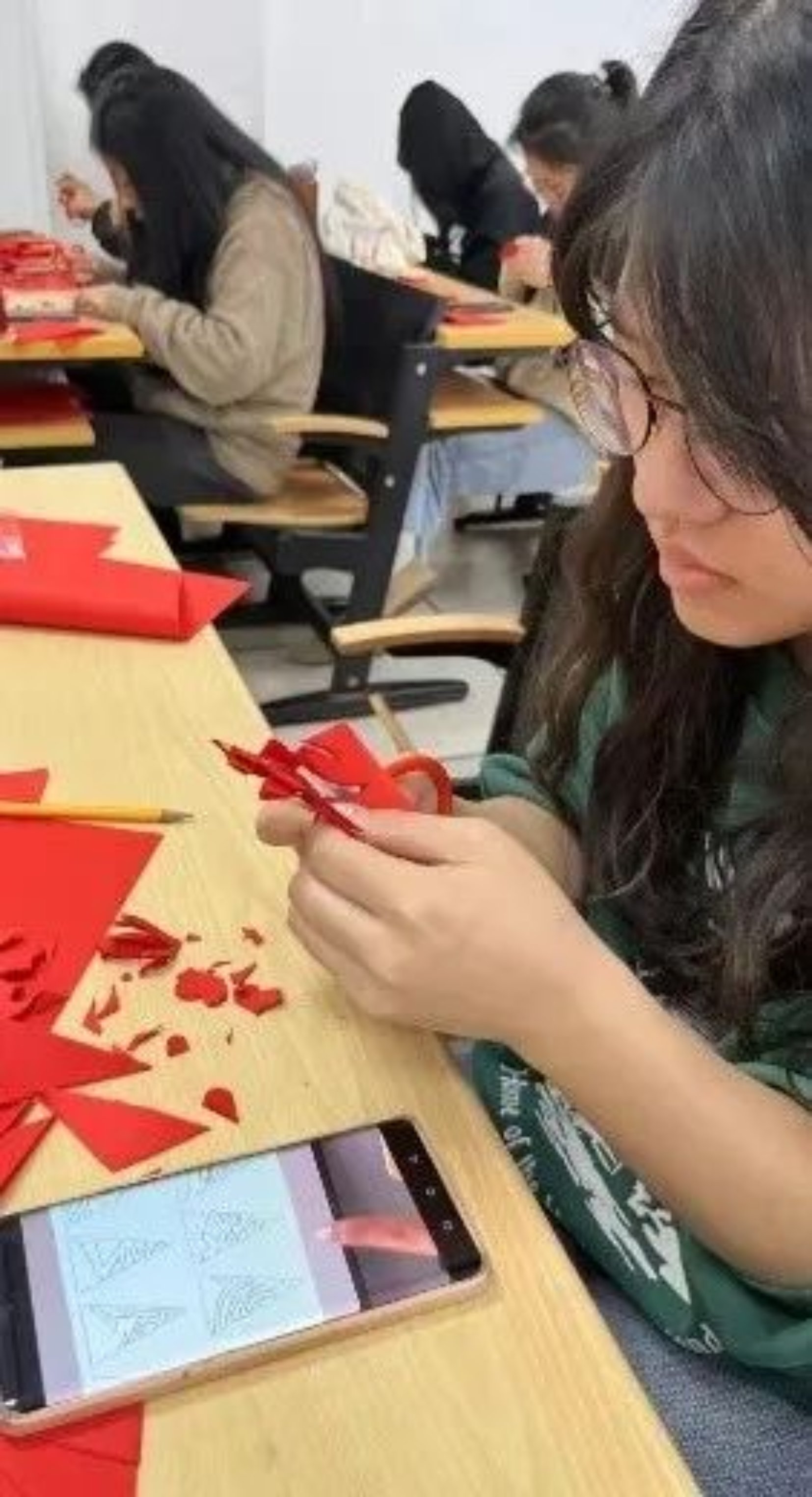 22级汉教学生在谭烁老师耐心指导下开展剪纸活动