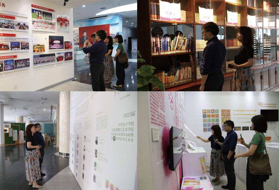 孙守迁一行首先参观了校史馆,了解到中华女子学院建校70余年来的历史发展、学校特色及国际交流等情况。随后,在王露的带领下对文化传播与艺术学院第16届毕业设计优秀作品展进行参观,并给予了高度肯定。