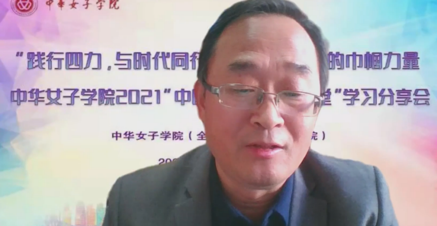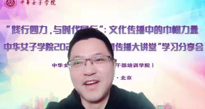 2022年1月10日上午,“践行四力,与时代同行”:文化传播中的巾帼力量——中华女子学院2021“中国新闻传播大讲堂”学习分享会在云端举行。中华女子学院校长、联合国教科文组织“媒介与女性”教席主持人刘利群教授、中国传媒大学电视学院书记、博士生导师曾祥敏教授、中华女子学院教务处长侯典牧教授出席会议。本次会议由文化传播学院院长臧海群教授主持,文化传播学院网络与新媒体专业全体师生在线上参与了分享会。