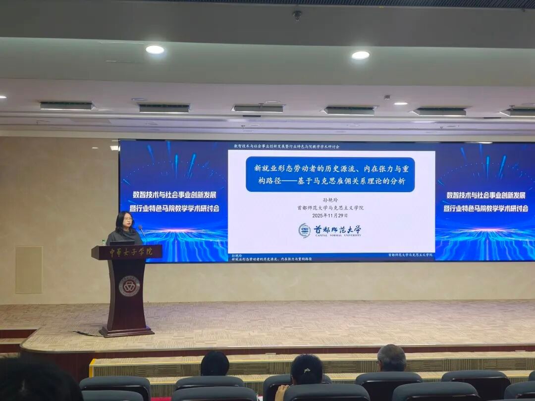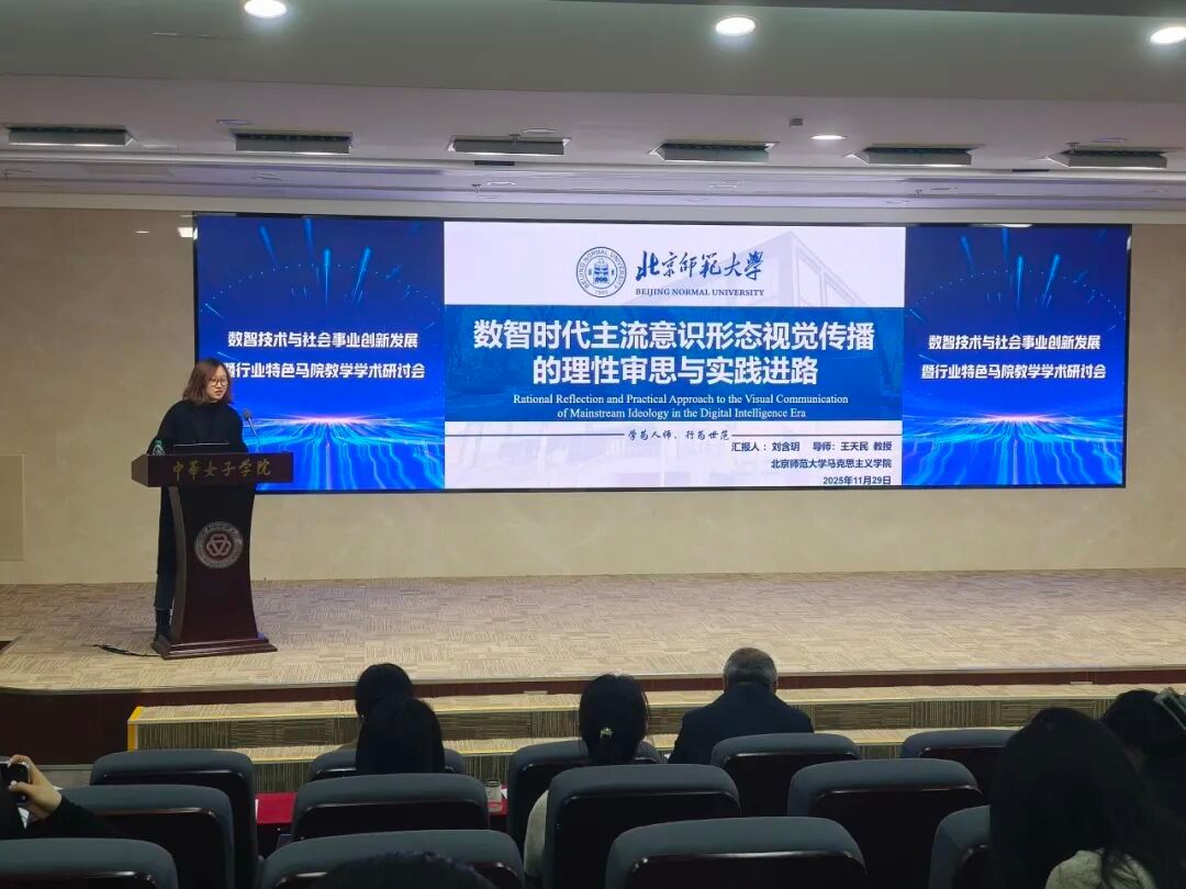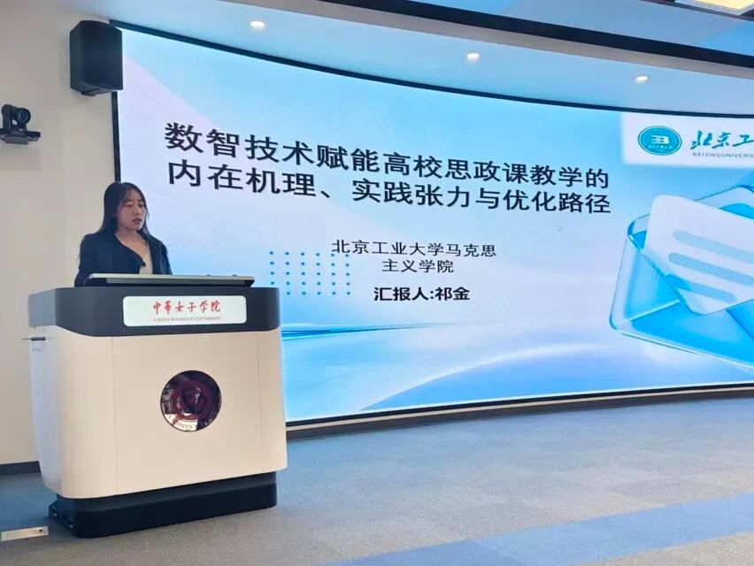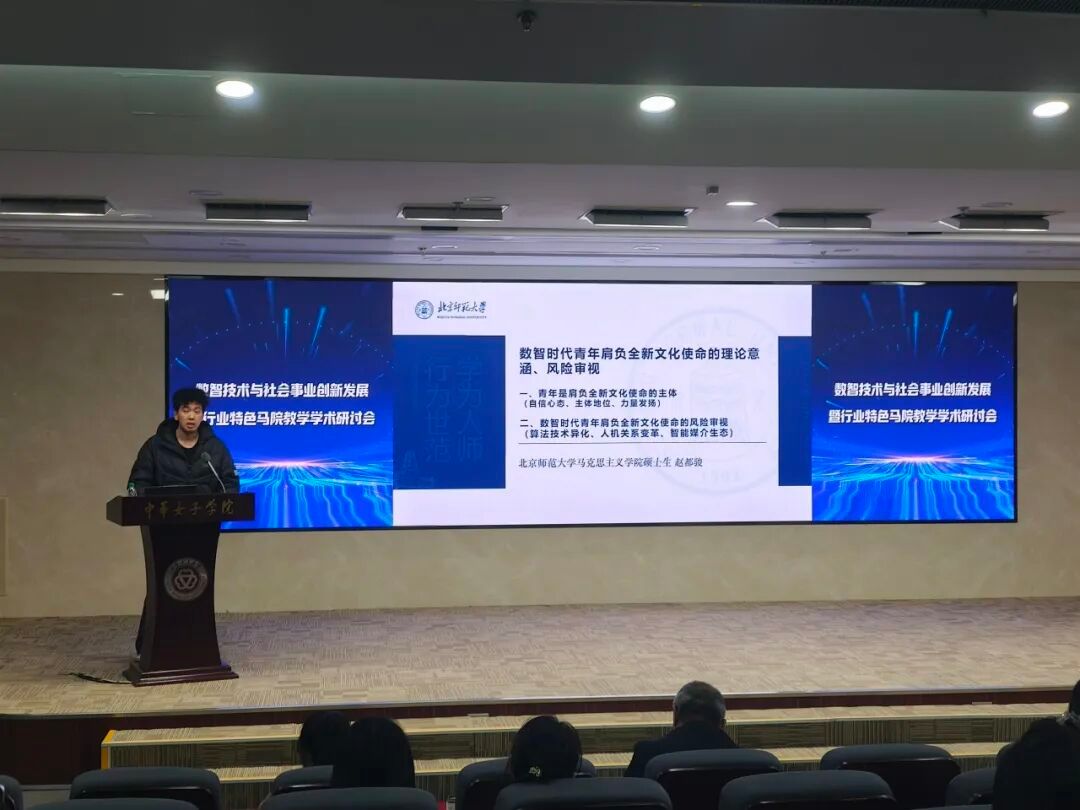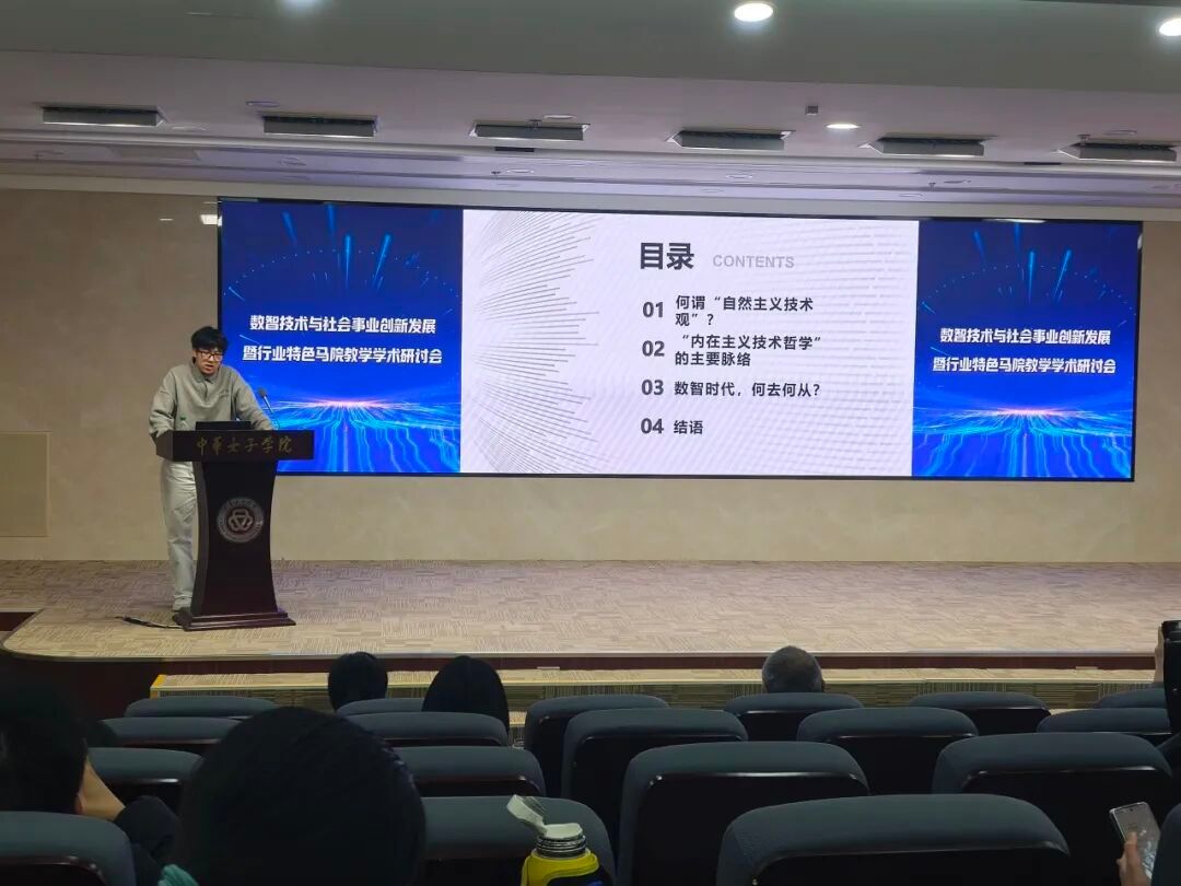 郑州大学哲学学院郦平教授做了“人工智能伦理建构困境与应急伦理回应”的报告。湖南女子学院马克思主义学院院长易永平教授做了“异化劳动的超越与人的全面发展:马克思主义妇女观视域下新时代女性权益维护的路径探析”的报告。北京工业大学马克思主义学院计彤教授探讨了“‘生态文明教育’融入大中小学思政课一体化建设研究”的问题。中华女子学院马克思主义学院院长王欢汇报了 “三访·三赋·三行”教学模式的创新与实践。中国劳动关系学院马克思主义学院副院长孙伟正副教授结合AI技术的应用优势,提出AI赋能下“金课”建设的对策建议。